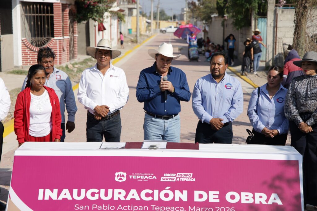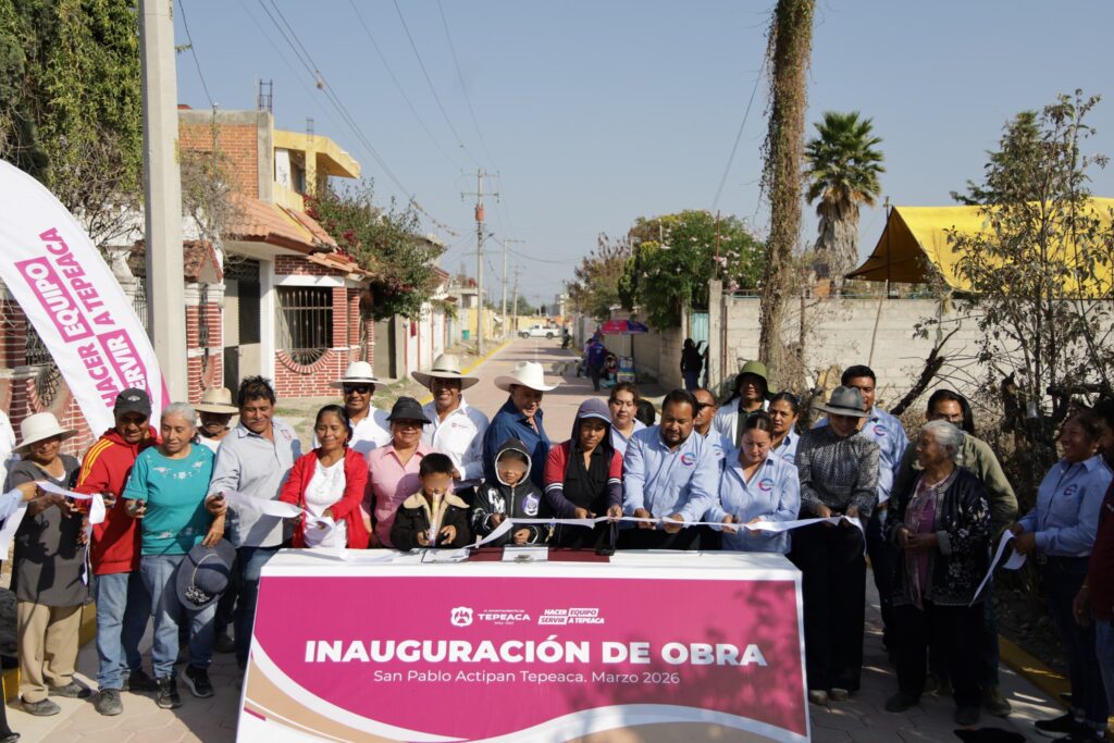 San Pablo Actipan, Puebla.— Autoridades municipales realizaron la entrega oficial de la obra de pavimentación con adocreto en la calle Emiliano Zapata, una acción que busca mejorar la movilidad, la seguridad y la calidad de vida de las familias que habitan en esta zona del municipio.