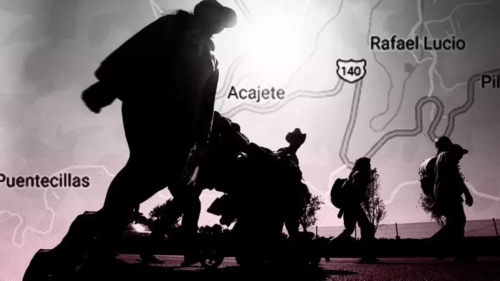 De repente ya todos tienen un familiar en Chiapas. O un negocio. O una propiedad. Eso ya ahora es muy común en Acajete. Esas son las familias o la gente que se han enganchado con otros grupos delictivos más amplios y grandes que controlan la frontera sur y que usan a las familias de Acajete para que resguarden a los migrantes o los trasladen por el Triángulo Rojo, pasen por Puebla y los lleven hacia el norte del país”.