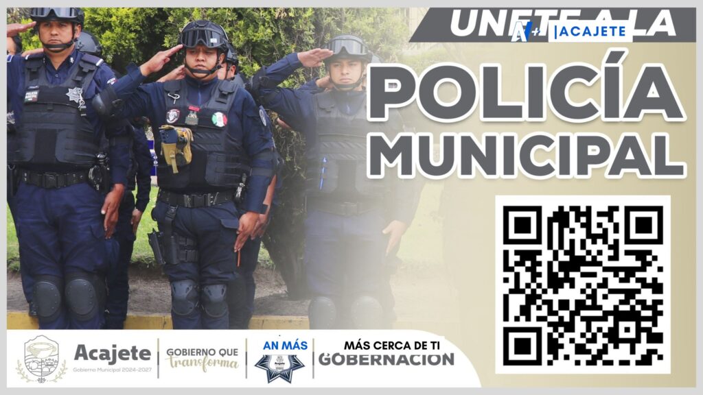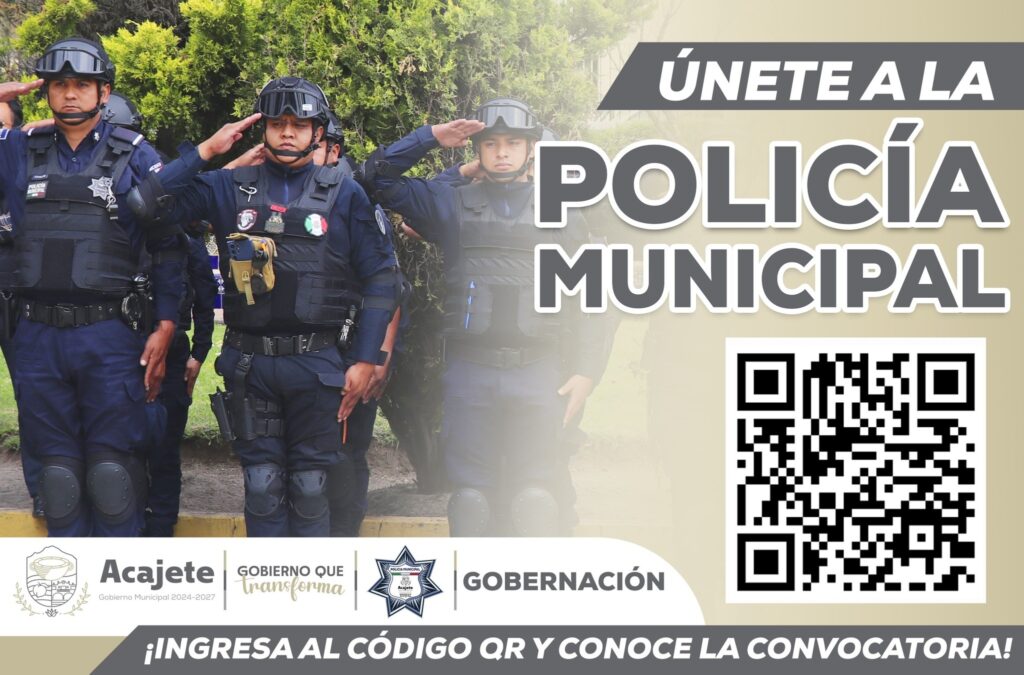 Los interesados en sumarse a las filas de la Policía Municipal pueden consultar la convocatoria completa escaneando el código QR en la imagen del anuncio o acudir directamente a las oficinas de la Dirección de Gobernación, ubicadas en el CIS, en calle 7 poniente #90, Barrio de Jesús, Acajete, Puebla.