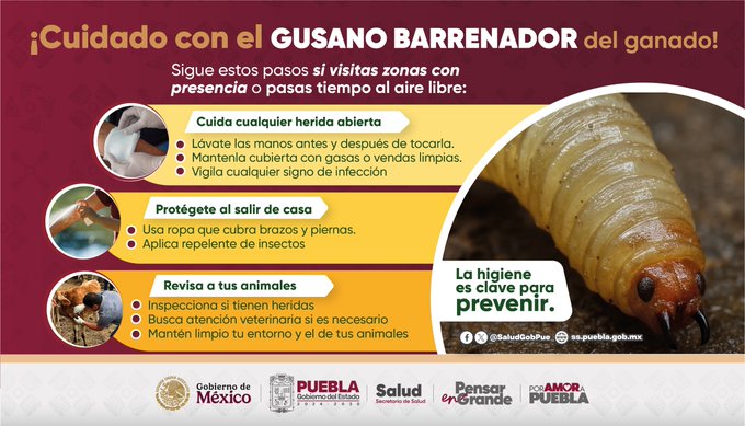 Durante una reunión de la Unión Ganadera Regional del Norte de Puebla, realizada en la sede de la Asociación Ganadera Local de Villa Juárez, en la cabecera municipal de Xicotepec, autoridades y productores ganaderos acordaron reforzar las acciones sanitarias para combatir el gusano barrenador, luego de confirmarse un segundo caso positivo de esta plaga en la región.