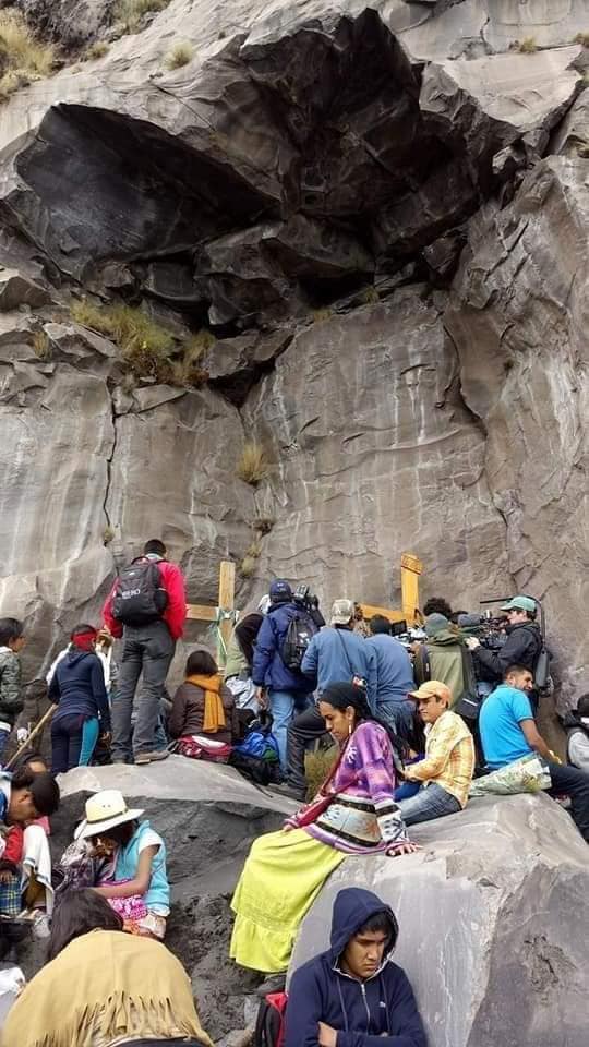 El ritual se hace en una formación rocosa conocida como “el ombligo del volcán”, que está a menos de 3 kilómetros del cráter, y es el único punto donde hay sombra en medio de un paraje que parece de otro planeta: piso de arena negra que pareciera movediza y te chupa los pasos al caminar, matas de pasto seco esparcidas cada dos o tres metros y los esqueletos de árboles muertos, con tramos tapizados de piedra porosa directa de las entrañas del volcán y rocas negras brillantes. Todo eso cubierto por los rayos del sol y el impactante silencio del cráter del volcán.