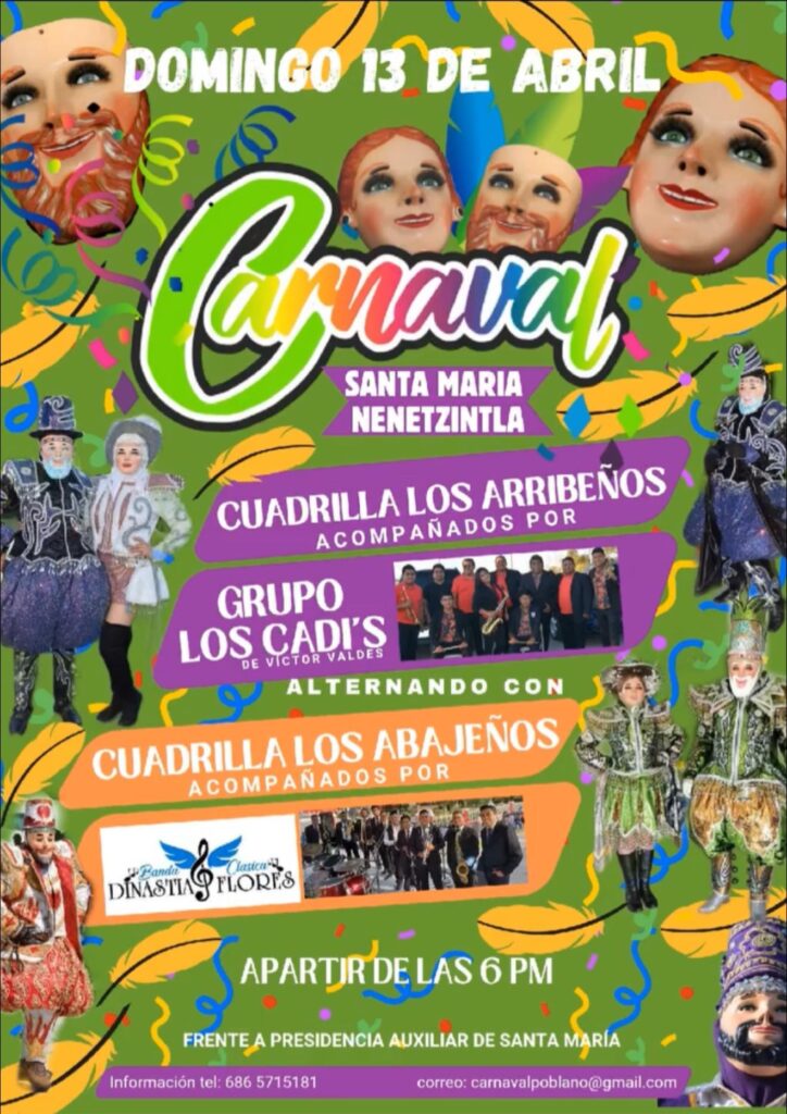 Santa María Nenetzintla está lista para recibir a visitantes y locales en una de sus festividades más emblemáticas: el carnaval. El presidente de la junta auxiliar, Jibran Sánchez Aguilar, hizo una invitación abierta a la comunidad para participar en los eventos que tendrán lugar los días 12, 13 y 19 de abril en la explanada de la presidencia auxiliar.