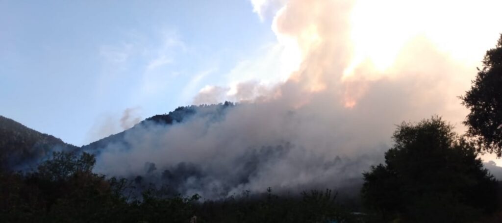 Alrededor de las 16:00 horas de este martes 30 de marzo se reactivó el incendio forestal en el Cerro del Pinal, en el municipio de Acajete.