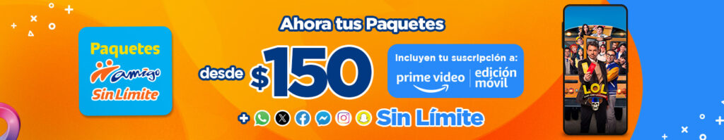 Las recargas Amigo Sin Límite a partir de 150 pesos incluyen gratis Prime Video, pero se trata de una edición móvil de la app de series y películas que solo permite ver contenido en el celular, sin posibilidad de transmitir a otras pantallas externas. Las recargas Amigo de 200, 300 y 500 también incluyen Prime Video Edición Móvil.