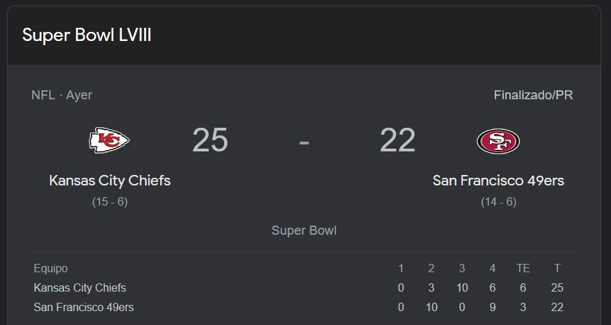 Tras un partido cardíaco que tuvo que llegar a los tiempos extras, los kansas City chiefs lograron alzar por segunda vez consecutiva el ansiado Vince Lombardi en el super Bowl LVIII. Los chiefs se consolidad como la nueva gran dinastía del deporte estadounidense.