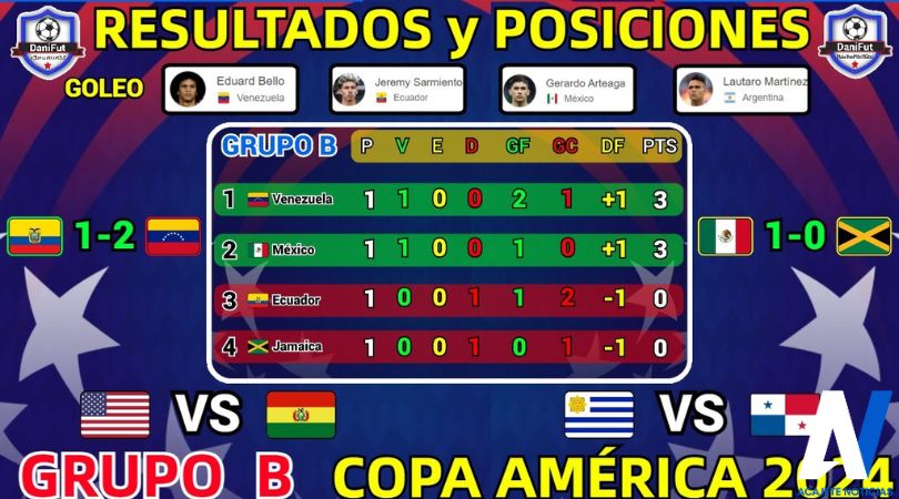 - Ecuador 1-2 Venezuela, sábado 22 de junio, 16:00 horas