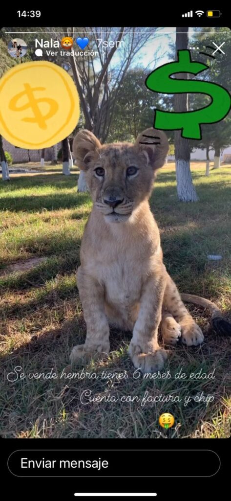 Amozoc, Pue.- Magdiel de la Rosa Ruíz, hijo del edil de Amozoc, Mario de la Rosa, es visto en redes sociales con su mascota exótica, un león de un poco más de 6 meses, el cual también pone a la venta. En cuanto se denunció borró las imágenes de su cuenta.