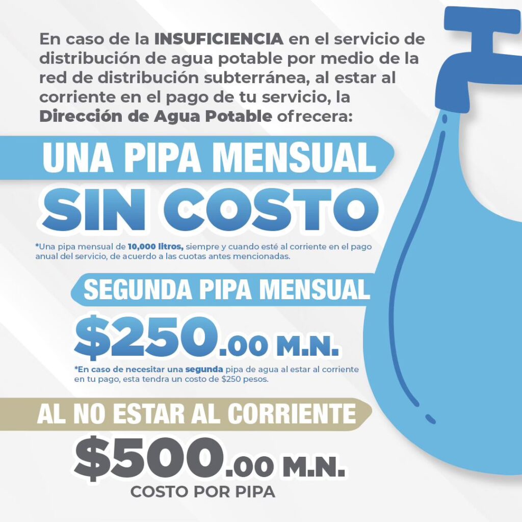 - Para quienes tengan adeudos: $500.00 por cada pipa.