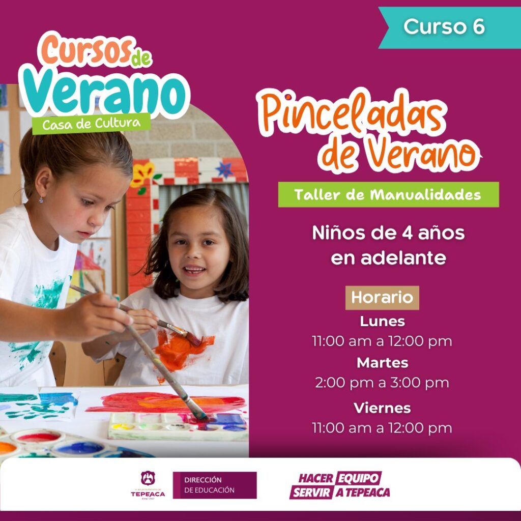 El H. Ayuntamiento de Tepeaca, a través de la Casa de Cultura, invita a niñas, niños y jóvenes a vivir un verano lleno de creatividad, conocimiento y diversión.