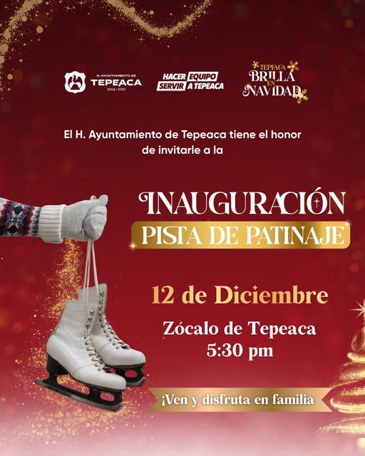 Este viernes 12 de diciembre, el municipio de Tepeaca dará inicio oficialmente a las actividades decembrinas con la gran inauguración de la Pista de Patinaje Navideña, un espacio pensado para el disfrute de niñas, niños, jóvenes y familias completas.