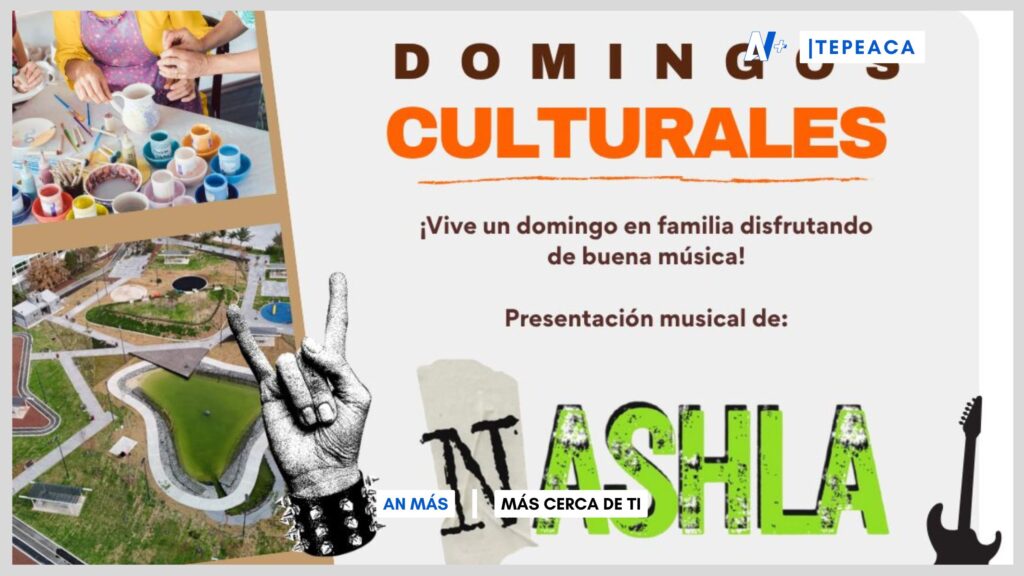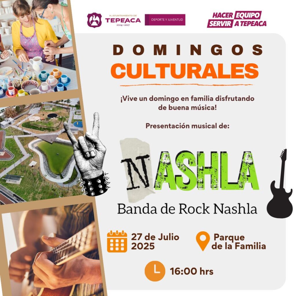 Como parte del programa Domingos Culturales, se presentará la reconocida Banda Nashla, una agrupación de rock que promete encender el ambiente con su energía y talento. La cita es a partir de las 16:00 horas.