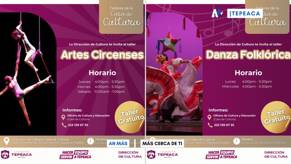 Tepeaca de Negrete. – La Dirección de Cultura del H. Ayuntamiento de Tepeaca invita a niños, jóvenes y adultos a formar parte de sus nuevos talleres de Artes Circenses y Danza Folklórica.