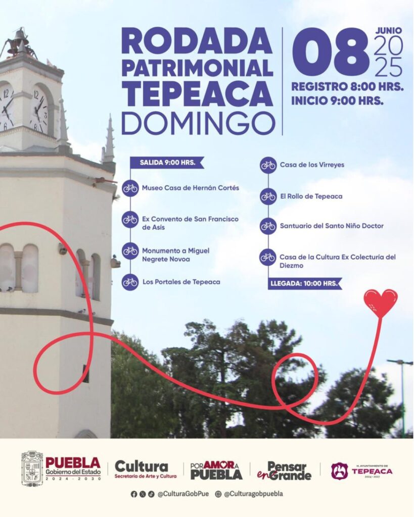 Este domingo 8 de junio, el H. Ayuntamiento de Tepeaca y la Secretaría de Cultura del estado de Puebla te invitan a participar en la Rodada Patrimonial Tepeaca 2025, una experiencia única que combina deporte, cultura y comunidad.