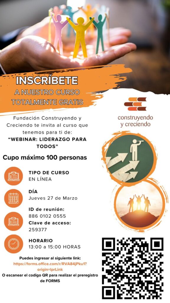 El curso, titulado “Liderazgo para todos”, está dirigido a quienes buscan mejorar sus habilidades de liderazgo y crecimiento personal. Con un cupo máximo de 100 participantes, el curso se impartirá en línea en un horario de 13:00 a 15:00 horas.
