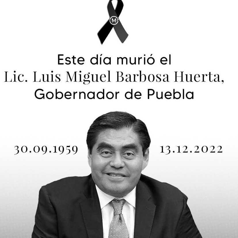 “Lamento mucho el fallecimiento de mi compañero Miguel Barbosa Huerta, gobernador del estado del Puebla. Acabo de hablar con su esposa Rosario, le expresé mi tristeza y hago extensivo mi más profundo pésame a familiares, amigos y a su pueblo”.