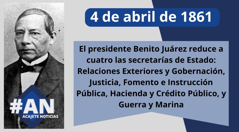 Un día como hoy pero de 1861 el presidente Benito Juárez reduce a cuatro las secretarías de Estado