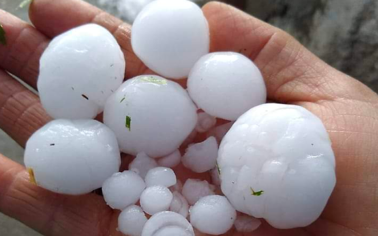Cerca de las 3 de la tarde del sábado lo que comenzó como una lluvia de temporada se convirtió en una tormenta de granizo, donde las bolas de hielo alcanzaron hasta los cuatro centímetros de diámetro.
