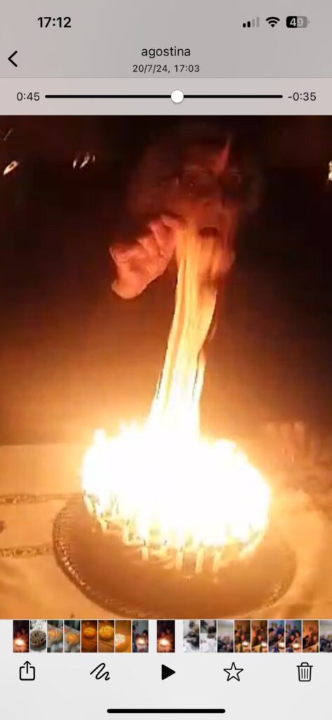 Luego de mostrar algunas de las fotografías del pastel lleno de fuego por las 95 velitas, la joven decidió compartir, a petición de los internautas, el video de los hechos.