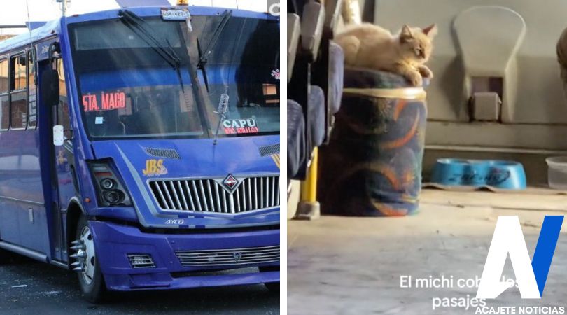 De acuerdo a las imágenes de la grabación, se puede observar al pequeño gato, de color miel y con patas y orejas café oscuro, llevar consigo en el cuello una cadena dorada y postrado sobre uno de los bancos, simulando ser el ayudante del chofer.